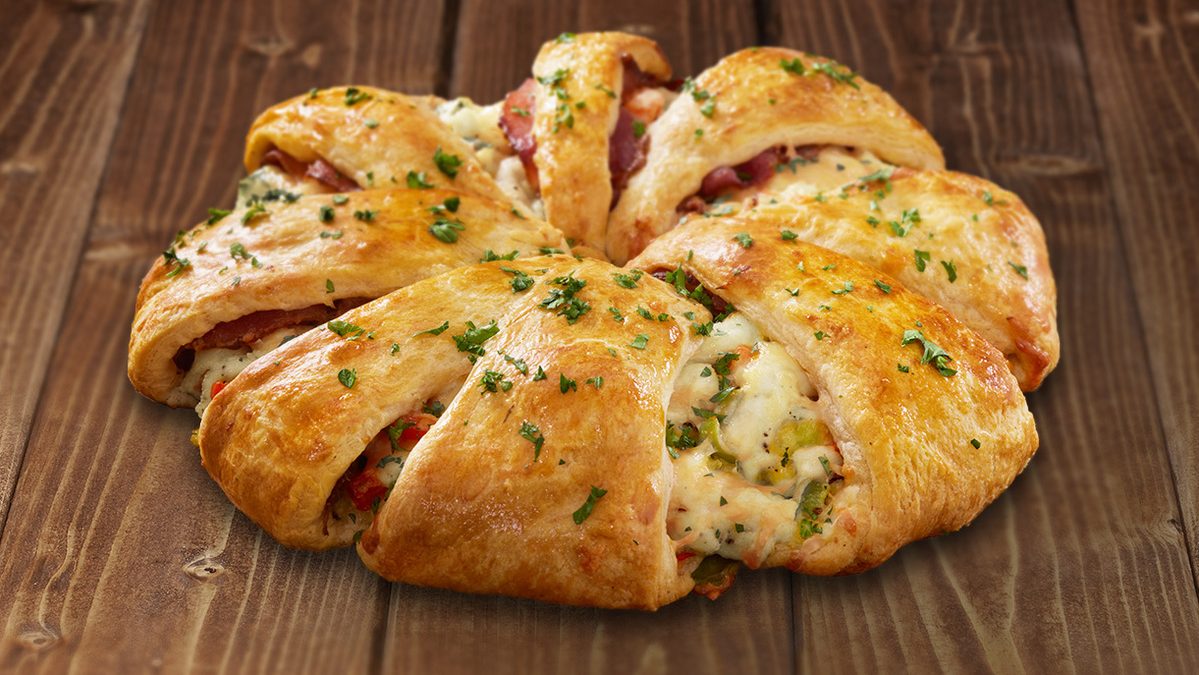 - Sur la plaque à pâtisserie préparée, étaler la pâte à croissant en un cercle de 4 pouces. Les triangles doivent pointer vers l’extérieur de la plaque à biscuits.