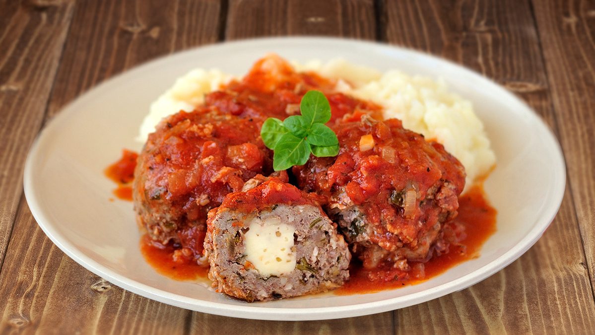 - Déposer les boulettes et cuire au four pendant environ 10 minutes. Ne pas trop cuire, pour éviter que le fromage ne se répande. Pendant la cuisson, faire chauffer la sauce tomate.