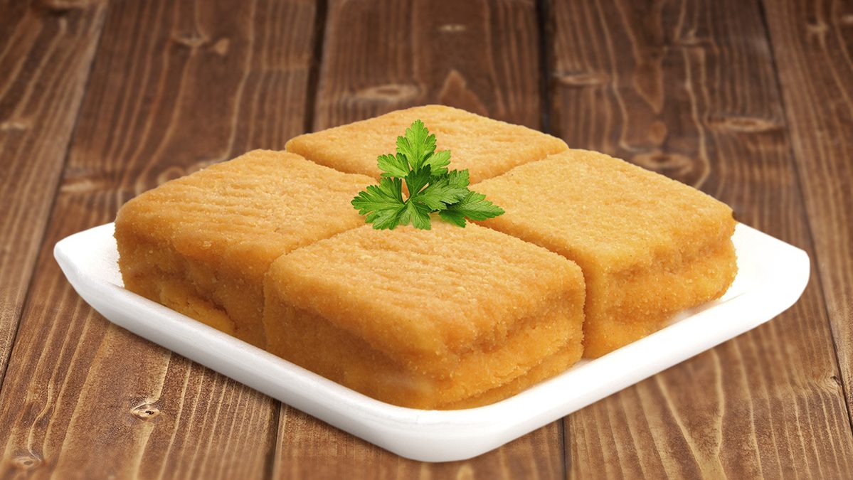 - Tremper les morceaux de fromage dans la farine, puis dans l’oeuf. Tremper à nouveau dans la farine, puis encore dans l’oeuf. Terminer en enrobant les morceaux de chapelure. Frire dans l’huile pendant environ 5 à 8 minutes, jusqu’à ce qu’ils soient bien dorés.
