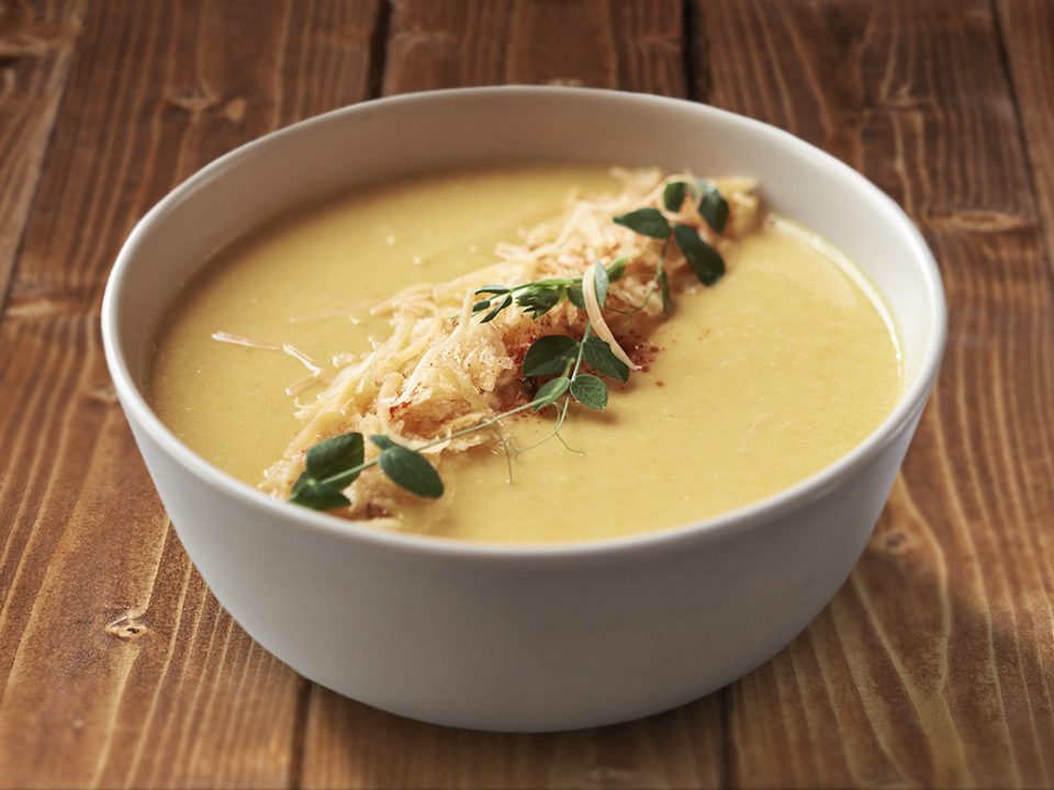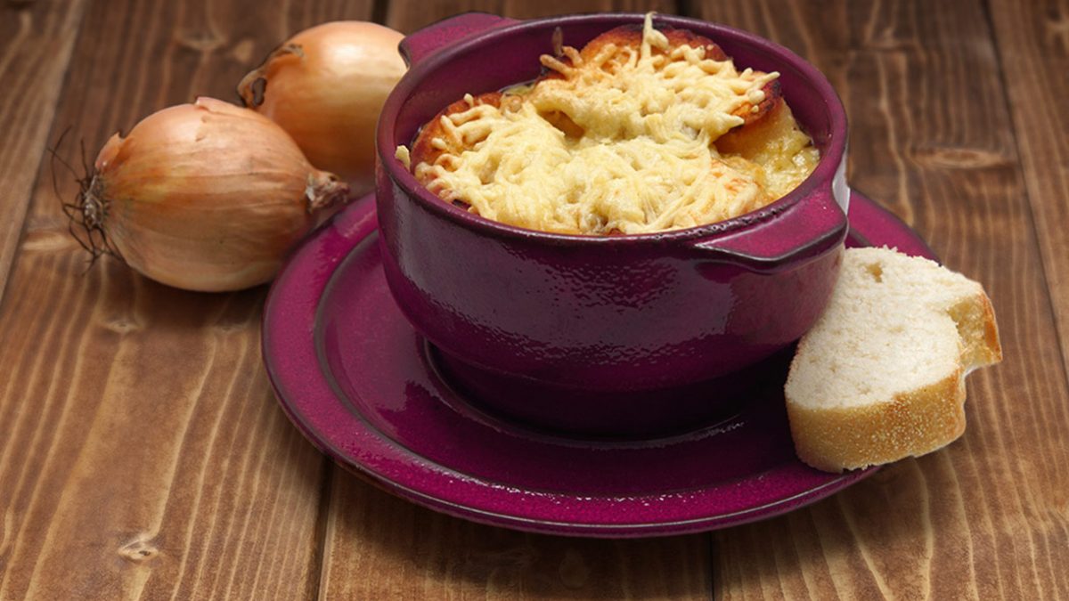- Verser la soupe dans des bols allant au four. Y déposer une tranche de pain et couvrir de tranches de fromage Menoum!